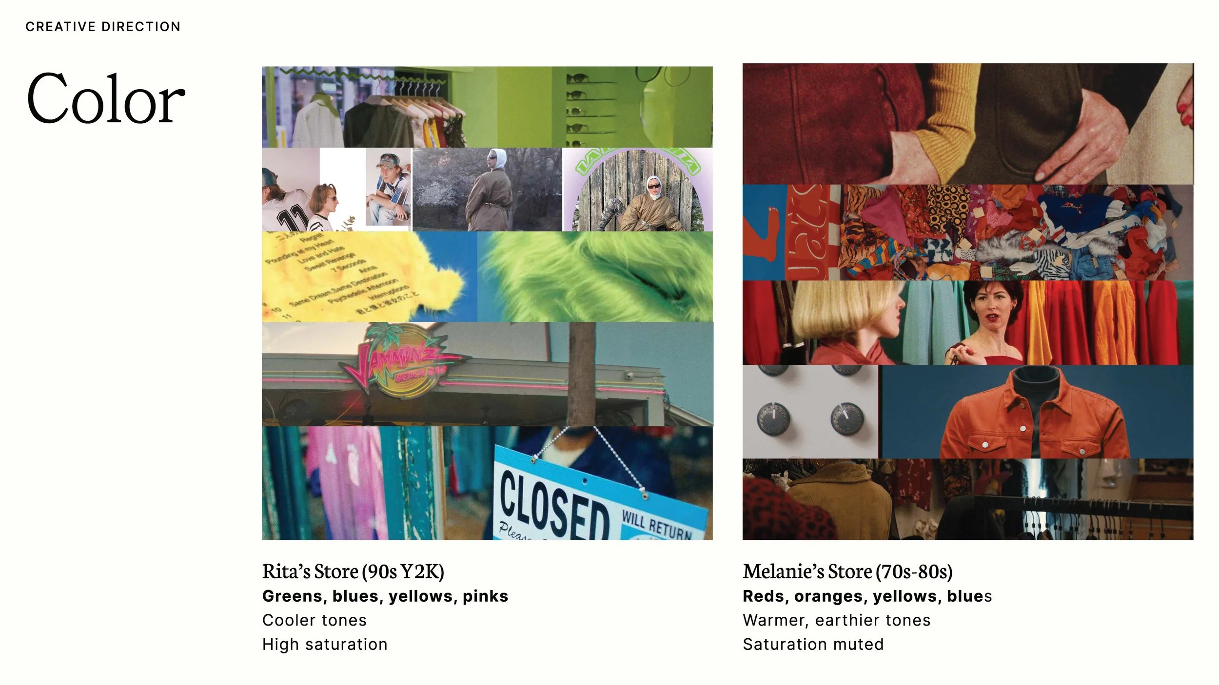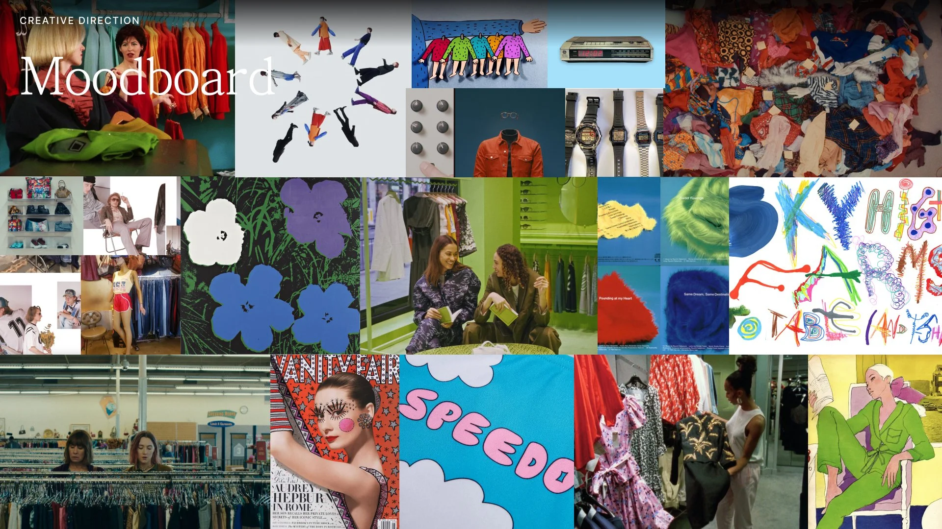 We learned every step of the video production process, but the part that hooked me the most was the treatment stage. That’s the piece I want to share with you today. Like most of my projects, this one started with a moodboard. We knew our two subjects were eclectic, bold, and full of energy, so we leaned into that with colors, graphics, and visual references. The art direction became our compass for every decision we made.